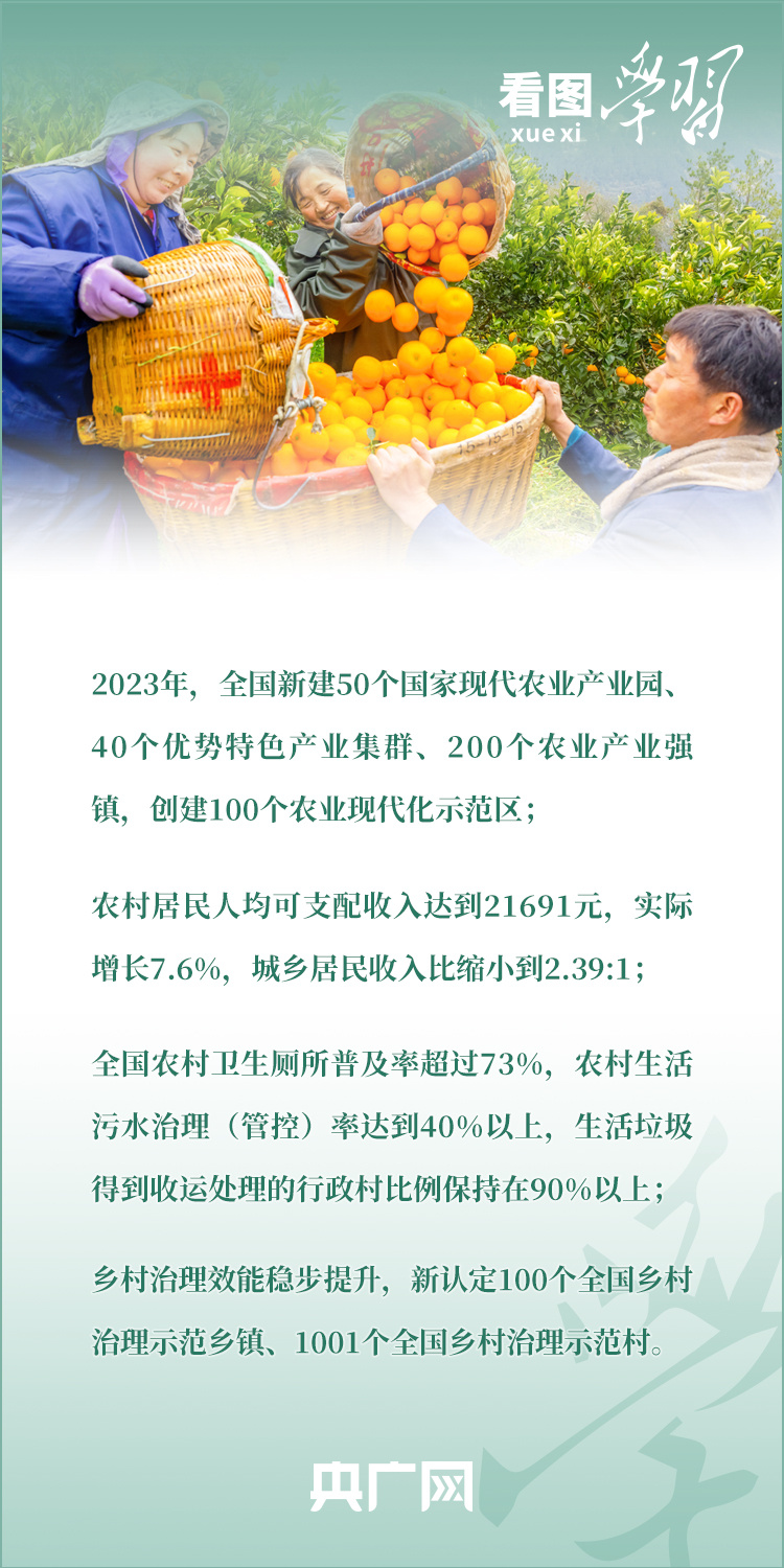 2024年中央一號文件近日發(fā)布,要求各地學習運用“千村示范、萬村整治”工程經(jīng)驗,有力有效推進鄉(xiāng)村全面振興。文件明確提出,要以確保國家糧食安全、確保不發(fā)生規(guī)模性返貧為底線,以提升鄉(xiāng)村產(chǎn)業(yè)發(fā)展水平、提升鄉(xiāng)村建設水平、提升鄉(xiāng)村治理水平為重點,打好鄉(xiāng)村全面振興漂亮仗,繪就宜居宜業(yè)和美鄉(xiāng)村新畫卷。《看圖學習》特梳理近兩年習近平總書記關(guān)于建設宜居宜業(yè)和美鄉(xiāng)村的重要論述,一起來學習!