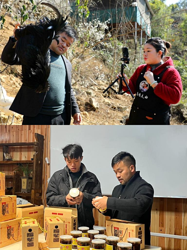 ??如今,山還是那些山,袁彬已將烏骨雞賣到全國各地。這背后是他為打開銷路進行的探索:他嘗試電商直播,直播間就設(shè)在雞棚。產(chǎn)地直銷、直播選貨……他的直播間經(jīng)常“爆單”。去年9月,袁彬帶著村里幾個年輕人一起搞電商直播,把他們培養(yǎng)成了月薪近萬元的帶貨主播。