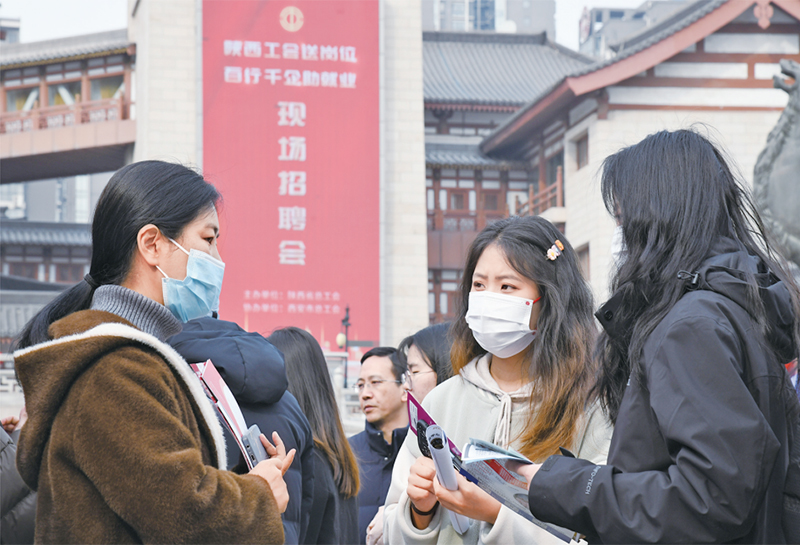 2024年3月6日,由陜西省總工會舉辦的2024年陜西工會“春送崗位”就業(yè)服務(wù)月啟動儀式在西安舉行。與啟動儀式同期舉辦的現(xiàn)場招聘會吸引約200家用人單位參加,提供崗位超過5000個。圖為當日求職者在現(xiàn)場招聘會上與企業(yè)工作人員交流。 新華社記者 張博文/攝