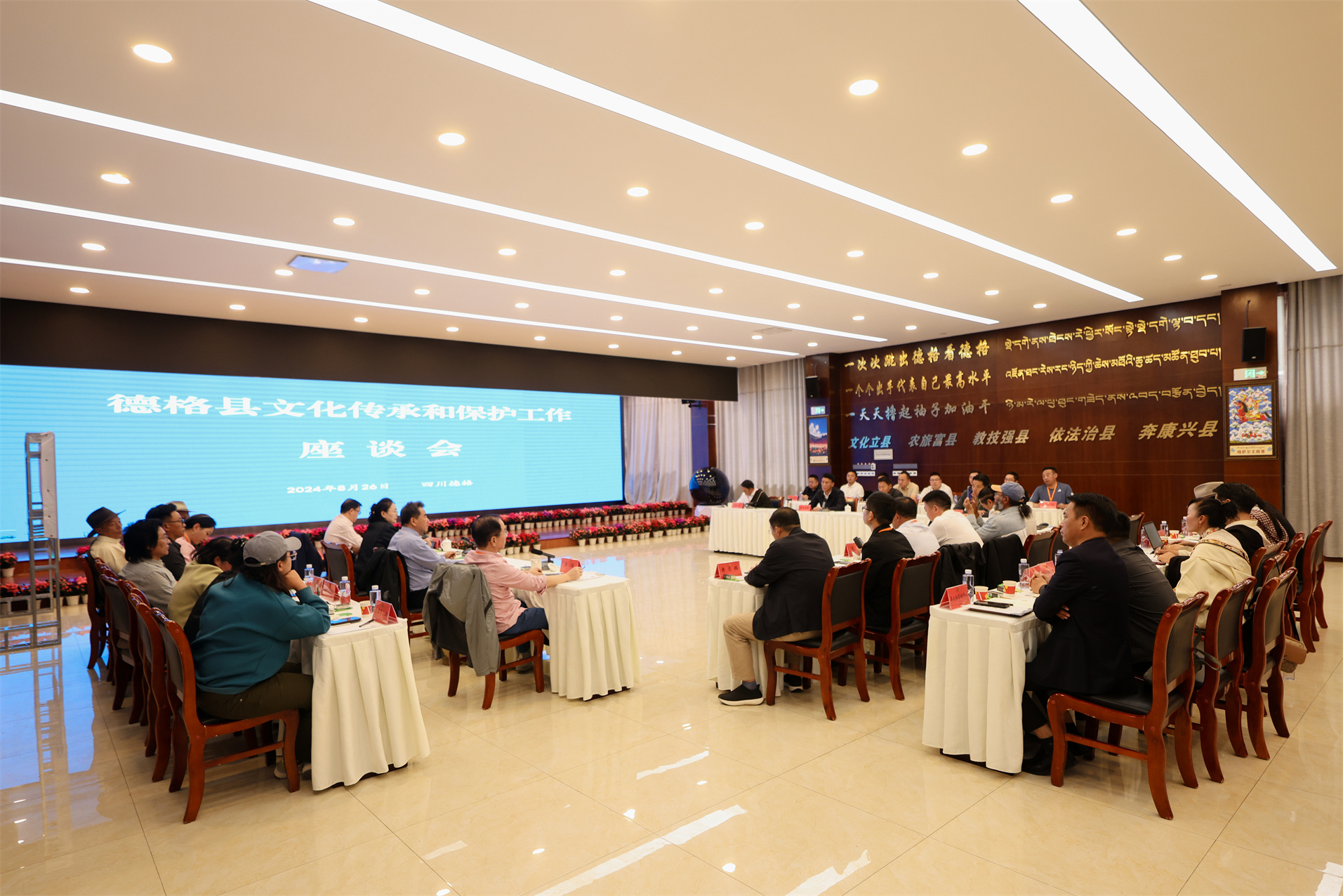 在文化傳承和保護(hù)工作座談會(huì)上,全國(guó)《格薩(斯)爾》工作領(lǐng)導(dǎo)小組辦公室主任諾布旺丹、副主任甲央齊珍和著名詞作家屈塬、原四川省文化廳副廳長(zhǎng)澤波、四川黨的建設(shè)雜志社編委根秋多吉、康巴文化研究院院長(zhǎng)楊勝6位專(zhuān)家學(xué)者從自身專(zhuān)業(yè)角度出發(fā),為塑造“文化德格”建言獻(xiàn)策。