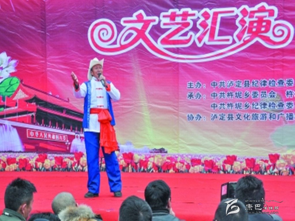 本網(wǎng)訊(姜濤 文/圖)12月22日,瀘定縣在杵坭鄉(xiāng)舉辦黨風(fēng)廉政建設(shè)宣傳教育文藝匯演,全縣各鄉(xiāng)鎮(zhèn)黨委主要負(fù)責(zé)人、杵坭鄉(xiāng)機(jī)關(guān)干部職工、各村財(cái)政供養(yǎng)人員、中心校學(xué)生、群眾400多人觀看了演出。 演出形式豐富多彩,表演者用曼妙的歌聲歌頌廉政建設(shè)給人民群眾帶來的實(shí)惠,唱出了杵坭鄉(xiāng)增強(qiáng)廉潔自律意識的火熱情懷;用舞蹈來展現(xiàn)廉政建設(shè)開出的和諧之花,營造出一種清正廉潔、求真務(wù)實(shí)的良好氛圍。每一個(gè)節(jié)目都緊緊圍繞著清正廉潔、秉公守法這一主題,演出精彩紛呈、高潮迭起,精彩的表演引來觀眾的連連喝彩和陣陣掌聲。杵坭鄉(xiāng)山歌王吳全清用山歌《黨員干部走基層》生動(dòng)反映出中央八項(xiàng)規(guī)定出臺以來鄉(xiāng)鎮(zhèn)干部在改進(jìn)“四風(fēng)”方面取得的喜人變化,讓群眾真切地感受到“廉”就在身邊,弘揚(yáng)廉政文化建設(shè)所取得的輝煌成就。
