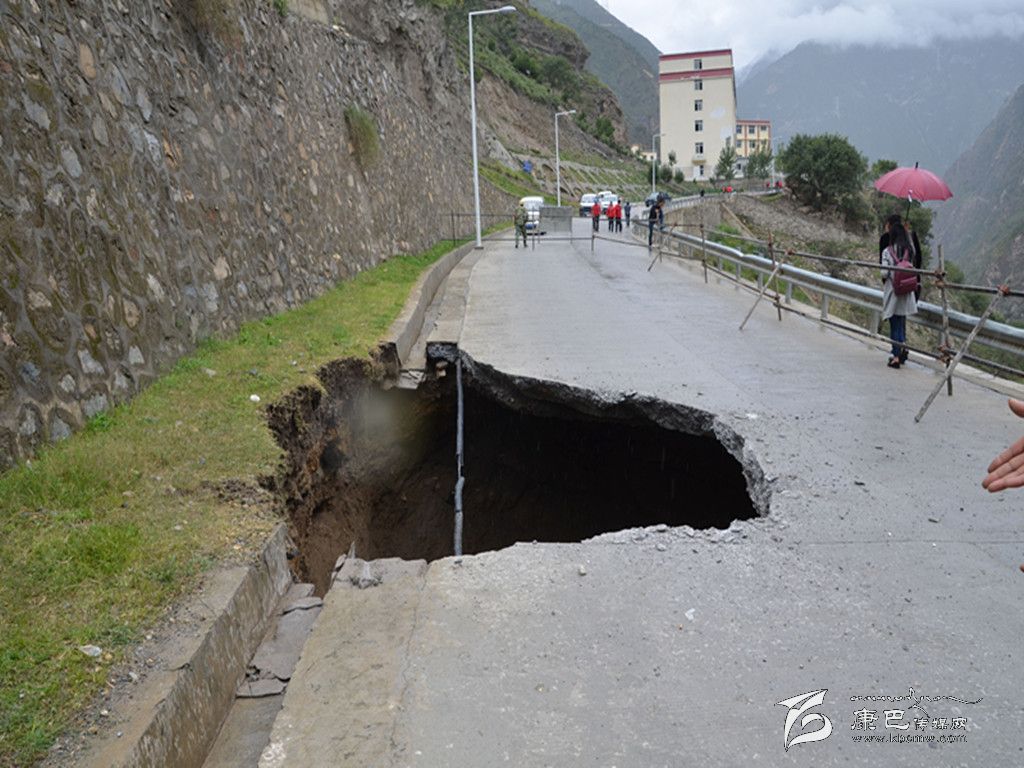 本網(wǎng)訊 (李麗瓊) 今日上午9時(shí)許,國(guó)電一名清潔工在清掃路面時(shí)發(fā)現(xiàn),康定市孔玉鄉(xiāng)阿斗溝和寸達(dá)兩村的通村路面一段發(fā)生地陷并形成深坑。得知情況后,該鄉(xiāng)政府立即組織人員到現(xiàn)場(chǎng)查看險(xiǎn)情。在現(xiàn)場(chǎng),公路水泥路面下方的路基部分下陷形成了直徑約8、9米和不可預(yù)計(jì)高度的深坑。該鄉(xiāng)立即銜接猴子巖國(guó)電公司采取警示標(biāo)牌、隔離帶的設(shè)立工作,同時(shí)與企業(yè)協(xié)商迅速開展排險(xiǎn)工作。目前,當(dāng)?shù)卣呀?jīng)介入處理,并已逐級(jí)上報(bào)相關(guān)部門。