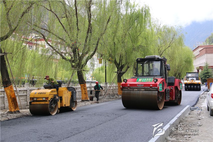 記者在下橋的一個(gè)溫馨提示牌上看到這樣的提示:“施工期間請(qǐng)大家注意安全,給你們帶來出行和生活上的不便敬請(qǐng)諒解,感謝各位的支持和理解。”記者沿折多河順流而下,在濱河路上看到,大型瀝青攤鋪機(jī)、壓路機(jī)一起行動(dòng),現(xiàn)場(chǎng)一派熱火朝天的景象。“現(xiàn)在鋪筑的是第一層瀝青,也是最關(guān)鍵的一道工序,必須要保證路面厚度、平整度。”正在負(fù)責(zé)監(jiān)督路面質(zhì)量的四川康立監(jiān)理公司員工田雪鋒對(duì)記者說。