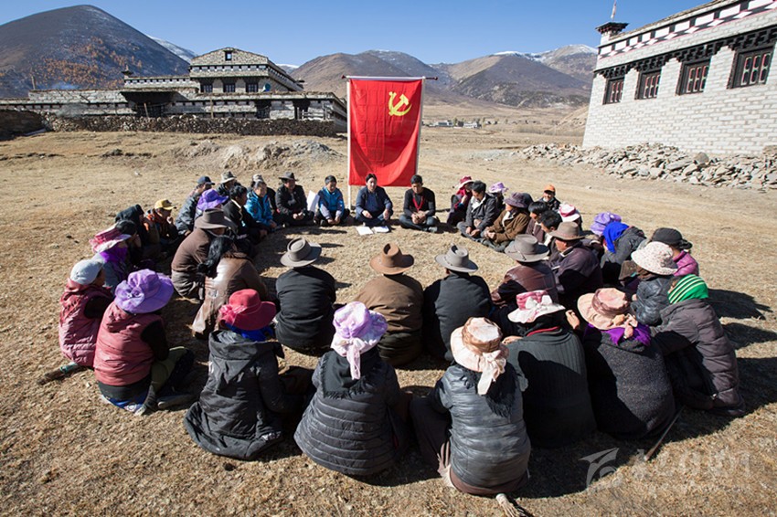 會議開始前,全體與會黨員在村民代表見證下重溫入黨誓詞。隨后,該鄉(xiāng)黨委書記布初用藏漢雙語現(xiàn)場傳達了黨的十九大主要精神,并重點闡述了黨的十九大關(guān)于鄉(xiāng)村振興戰(zhàn)略和民族團結(jié)和諧等內(nèi)容。最后,全體黨員群眾圍繞黨的十九大報告進行了交流發(fā)言。