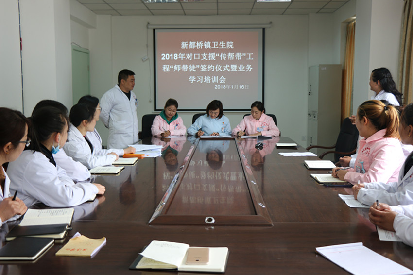 春風(fēng)沐浴、雨露滋潤(rùn);德隆情盛、高屋建瓴。為進(jìn)一步提升康定地區(qū)基層醫(yī)療衛(wèi)生機(jī)構(gòu)服務(wù)能力,打造一支有擔(dān)當(dāng)、有能力、可支撐的本土醫(yī)療衛(wèi)生人才隊(duì)伍。在對(duì)口幫扶工作中,康定市衛(wèi)計(jì)局高度重視本土人才培養(yǎng),將“傳幫帶”工作作為了重點(diǎn)。2018年1月8日,康定市疾控中心與都江堰市疾控中心通過(guò)座談商榷了“傳幫帶”幫扶方案,達(dá)成了共識(shí),下一步將通過(guò)對(duì)口幫扶,互訪交流、業(yè)務(wù)培訓(xùn),信息溝通共享等方式,在綜合管理、等級(jí)評(píng)審、人員能力建設(shè)、實(shí)驗(yàn)室檢驗(yàn)檢測(cè)能力建設(shè)、應(yīng)急處置能力建設(shè)等方面進(jìn)行重點(diǎn)“傳幫帶”。與此同時(shí),康定市第二人民醫(yī)院舉辦了對(duì)口支援“傳幫帶”工程“師帶徒”簽約儀式暨工作推進(jìn)會(huì)議。會(huì)上各位專家與選中的學(xué)員進(jìn)行現(xiàn)場(chǎng)簽約,雙方約定在今后的一年中,專家們通過(guò)理論培訓(xùn)、教學(xué)手術(shù)(操作)、教學(xué)查房、疑難病例討論、常見(jiàn)病多發(fā)病診治、開(kāi)展新技術(shù)新業(yè)務(wù)等方面進(jìn)行指導(dǎo)、幫扶、協(xié)作,明確了各自的目標(biāo)任務(wù)和工作職責(zé)。