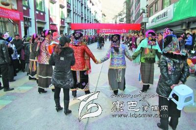 元旦前夕,丹巴縣為豐富城鄉(xiāng)居民的文化生活,在縣城步行街開展歡慶元旦佳節(jié)群眾文藝活動,丹巴縣嘉絨鍋莊協(xié)會成員和廣大群眾共同跳起歡樂的鍋莊,唱響了文化惠民的主旋律。圖為活動現(xiàn)場。 孟剛 攝影報道
