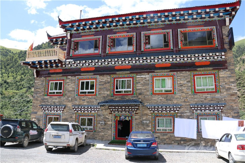 該酒店三樓一底,集餐飲、停車、住宿為一體,設單標間和套房共計22間38個床位,雇傭了3名當地村民幫工,院內甚至配套了超市和茶樓;藏文化元素俯仰皆是,雕梁畫棟,規(guī)模配備,儼已成為全縣鄉(xiāng)鎮(zhèn)一道亮麗風景。不論淡旺季,每間房價188元至258元不等。夏季正值入住高峰期,8月以來,幾乎天天客滿。