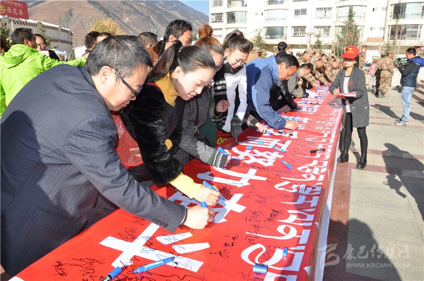 創(chuàng)建全國民族團結(jié)進步示范縣“萬人簽名”活動現(xiàn)場。