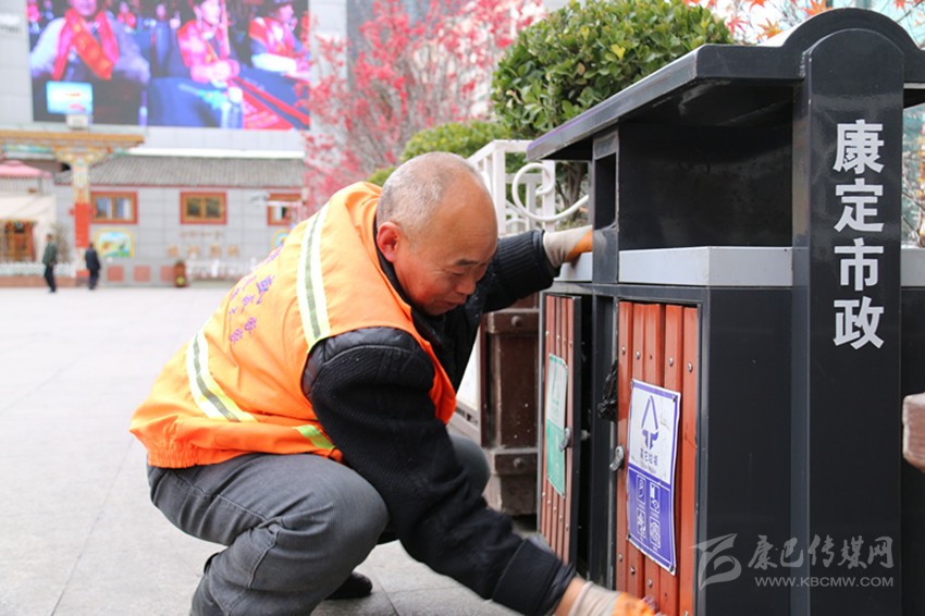 康定的街頭,在匆忙的人群中,那些身著橘黃色保潔服的環(huán)衛(wèi)工人隨處可見(jiàn)。在溜溜城步行街,他們揮動(dòng)著掃帚,掃起果皮、紙屑;在情歌廣場(chǎng),他們拿著抹布一遍一遍地擦拭著垃圾桶;在彩虹橋垃圾收集站點(diǎn),他們將垃圾桶里的垃圾裝上壓縮車,運(yùn)往垃圾處理廠……