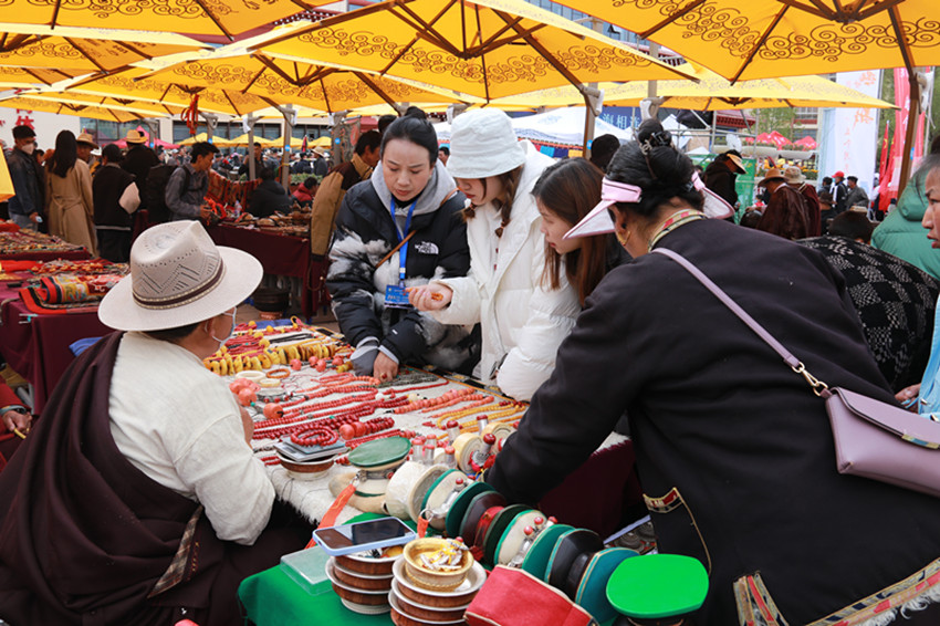 “這個銅鍋最低多少能出?”“這個藏刀上面的珠子是真的么?”……整整一天,羅布林廣場門庭若市、人聲鼎沸,詢問聲、報價聲、討價聲充斥在市集各個角落。來自甘肅省甘南州卓尼縣的商人嘎藏在古玩交易博覽活動展覽兩日,就達成26萬元的交易額。據他介紹,從受邀參加活動到現場展示,都有當地工作人員聯系對接,不僅免費提供展位,還有公安干警現場維護安全和秩序,更有當地政府每天送來午餐、晚餐和飲用水,參加此次古玩交易博覽活動很安心、舒心和放心。