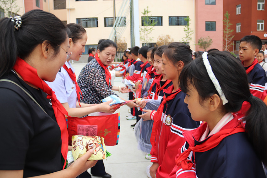 孩子們被節(jié)日前滿載愛心的禮物和祝福感動,他們?yōu)槲繂柦M的叔叔阿姨戴上鮮艷的紅領巾,小手牽大手留下美好感動的時刻。