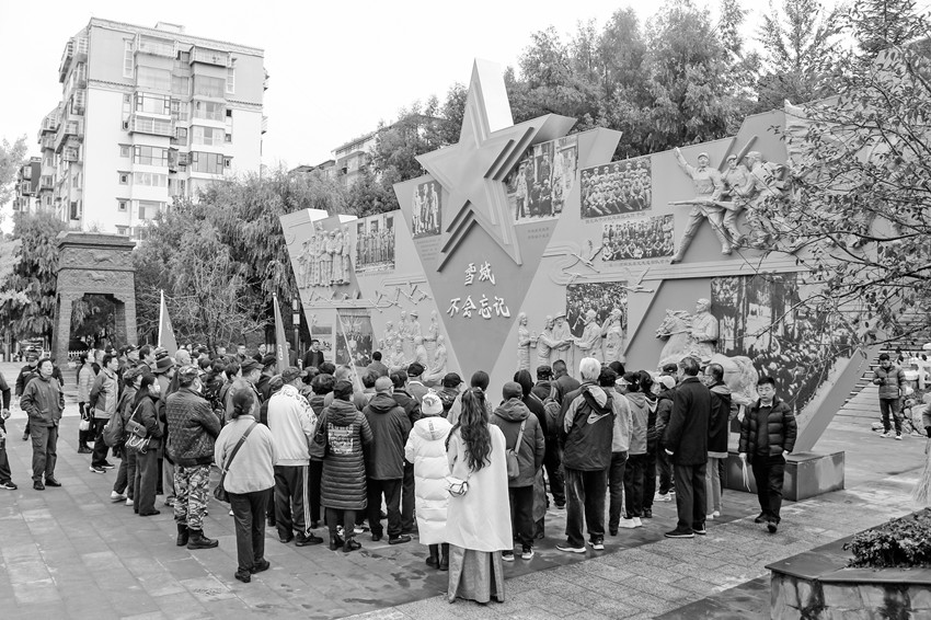 圖為革命后代參觀(guān)瞻仰“雪域不會(huì)忘記——康定和平解放暨南下干部入康紀(jì)念浮雕墻”。