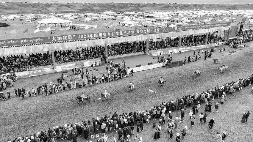 “中國藏族賽馬文化之鄉(xiāng)”“理塘八一傳統(tǒng)賽馬會(huì)”是四川涉藏州縣規(guī)模最大的賽馬會(huì),賽馬傳統(tǒng)延續(xù)長達(dá)400余年?!霸缇吐犝f過馬背上的理塘,今天終于親眼所見,實(shí)在不虛此行。草原追風(fēng),策馬飛奔,蹄聲如雷,震徹山野,這是多么壯美的理塘萬馬奔騰圖?。《嘞脒h(yuǎn)離城市的喧囂,策馬揚(yáng)鞭,馳騁草原,豪邁瀟灑,勇往直前。以后每一年的理塘賽馬活動(dòng),我一定會(huì)帶上家人再來這里,因?yàn)槔硖?,可謂是心靈棲息的地方?!痹凇按蟮貧g歌”2023年四川省鄉(xiāng)村文化活動(dòng)年——天空之城·理塘“八·一”賽馬會(huì)上,來自北京的游客石磊被當(dāng)?shù)刭愸R文化吸引,和朋友玩得不亦樂乎。