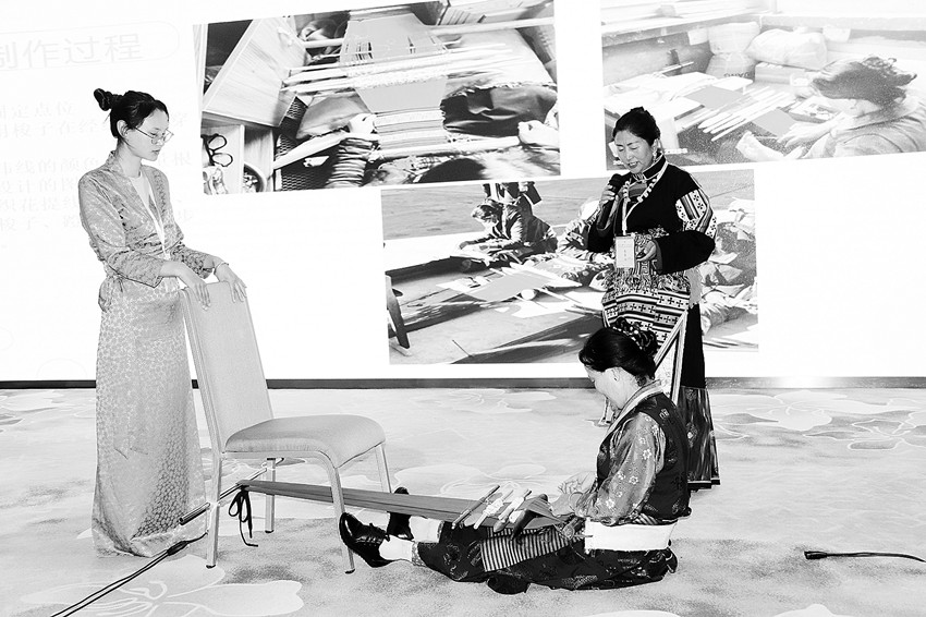 參賽選手現(xiàn)場展示編織手藝。