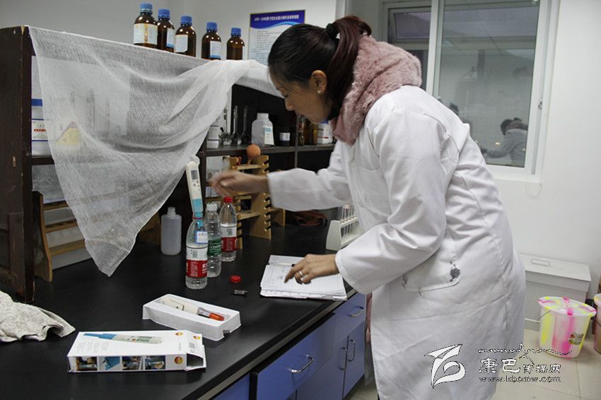 圖為監(jiān)測技術人員正在分析水樣。(圖片由州環(huán)保局提花供)