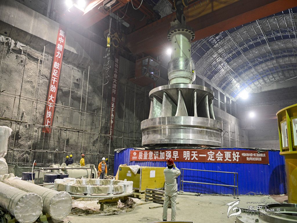 黃金坪水電站首臺機組轉輪吊裝就位