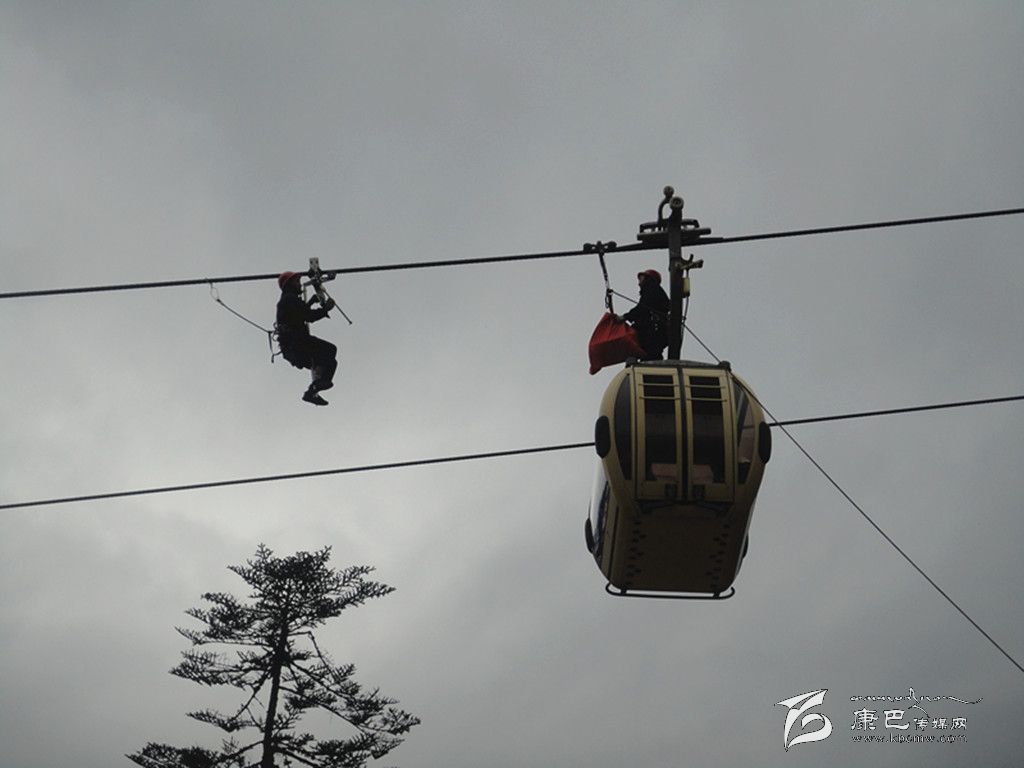 應(yīng)急演練活動(dòng)是模擬索道發(fā)生脫索故障,開展人工救護(hù)應(yīng)急訓(xùn)練。在演練活動(dòng)中,海螺溝客運(yùn)索道出現(xiàn)故障不能運(yùn)轉(zhuǎn),在1C支架和2#支架之間,兩個(gè)車廂共有三名游客滯留空中。海螺溝旅游索道公司立即啟動(dòng)應(yīng)急預(yù)案,救護(hù)總指揮下達(dá)救援指令。后勤組成員對(duì)著車廂喊話,穩(wěn)定游客情緒。救護(hù)小組全體人員,安全、有序、迅速到達(dá)各自崗位,地面工作人員與空中救援人員相互配合,同時(shí)密切注意被困乘客的安全情況,正確操作各項(xiàng)程序,僅用半個(gè)小時(shí)就將被困乘客送到地面,安全完成營(yíng)救。地面輔助救護(hù)人員立即對(duì)被營(yíng)救人員進(jìn)行現(xiàn)場(chǎng)檢查和救治,保障了被營(yíng)救人員的生命安全,應(yīng)急演練活動(dòng)圓滿完成。