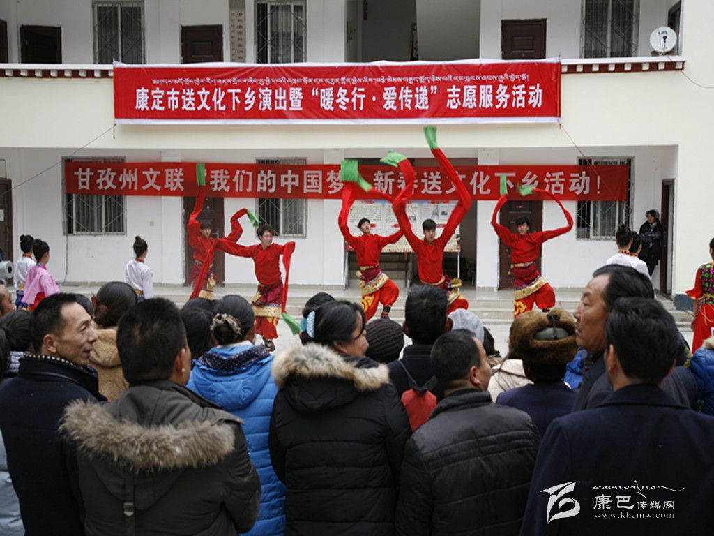 本網(wǎng)訊(本網(wǎng)記者 張兵)1月8日,由州文聯(lián)與康定市聯(lián)合主辦的以“我的中國夢”為主題的2016送文化下鄉(xiāng)文藝演出隊(duì)迎著冬陽伴著寒風(fēng)走進(jìn)大山深處的金湯鎮(zhèn)。整臺(tái)演出節(jié)目新穎、形式多樣,獨(dú)唱、歌舞、川劇、政策宣講等節(jié)目精彩紛呈,不時(shí)博得觀眾們的熱烈掌聲,鎮(zhèn)政府成了歡樂的海洋。同時(shí),州攝影家協(xié)會(huì)、州書法家協(xié)會(huì)的專家還現(xiàn)場免費(fèi)拍攝全家福照片、免費(fèi)書寫春聯(lián)。“送文化下鄉(xiāng)”演出隊(duì)帶去了黨和政府對(duì)人民群眾的關(guān)懷,同時(shí)也營造了文明、健康、歡樂、祥和的節(jié)日氣氛。當(dāng)天,“送文化下鄉(xiāng)”演出隊(duì)不辭辛苦,還在姑咱鎮(zhèn)進(jìn)行了演出。