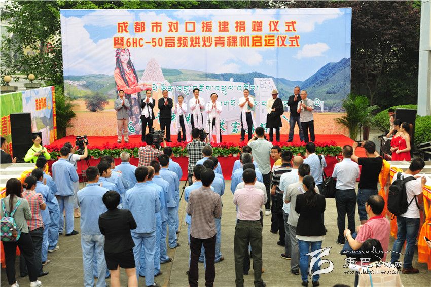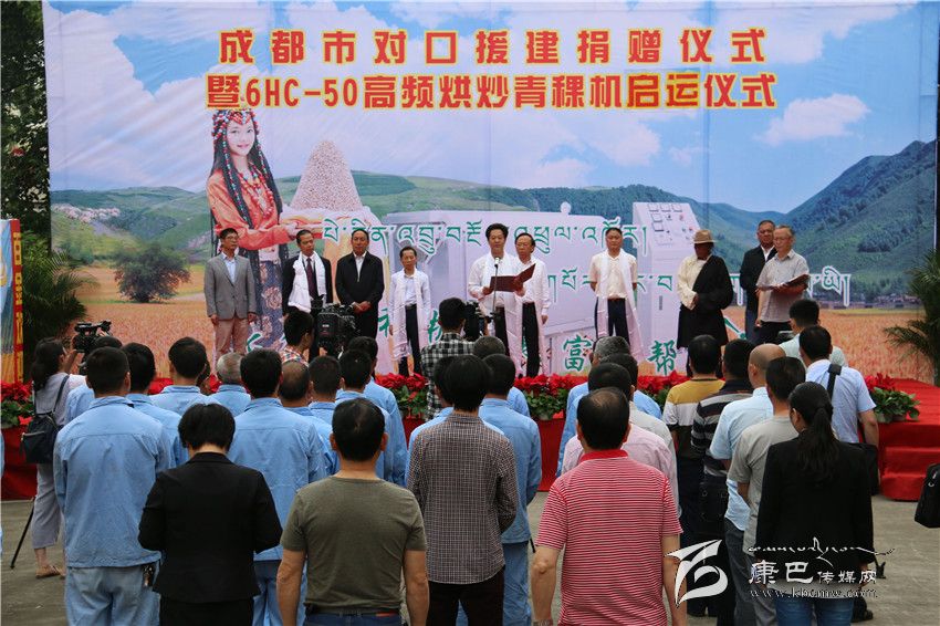 成都市委常委謝瑞武宣布50套全自動(dòng)高頻青稞烘炒機(jī)啟運(yùn)甘孜州。