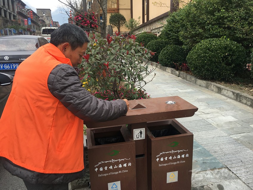 “現(xiàn)在海螺溝管理局的干部職工自己不亂扔垃圾,發(fā)現(xiàn)垃圾還會主動清理,你說我們還好意思亂扔垃圾,還好意思在店外亂擺攤嗎?”海螺溝一餐館的老板告訴記者:“我是海螺溝本地人,可以說是見證了海螺溝的變化。以前的海螺溝又臟又亂,到處都是垃圾,大風(fēng)一吹,空中飄的就是塑料袋、紙片和沙塵,管理局的干部來宣傳衛(wèi)生時沒有人聽,大家都是我行我素。現(xiàn)在海螺溝進行了風(fēng)貌改造,街道變干凈了,干部又帶頭搞衛(wèi)生,他們來宣傳和管理時我們還有什么說的。”