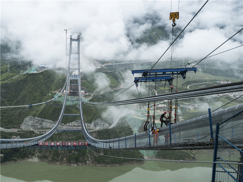 2017年“川藏第一橋”的雅康高速瀘定大渡河興康特大橋架設(shè)。游蓉萍 攝