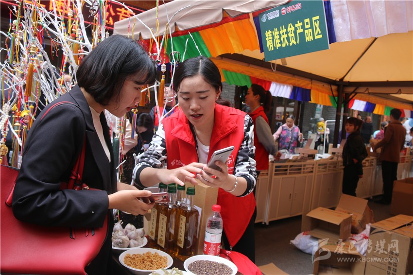 工作人員正在向消費(fèi)者推薦本土電商平臺(tái)。