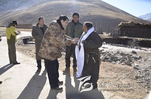 在玉隆鄉(xiāng),慰問工作組每到一戶,都與結(jié)對親戚深入交談,詳細(xì)了解家里的日常生活、需要需求、經(jīng)濟(jì)收入、看病就醫(yī)、子女上學(xué)等情況,并給他們送去了清油、茶葉等慰問品和慰問金。工作組還使用藏漢雙語就十八屆三中全會和州委十屆五次全會主要精神給結(jié)對親戚進(jìn)行宣傳講解,引導(dǎo)他們?yōu)榻ㄔO(shè)美好家園增進(jìn)共識,樹立信心,并認(rèn)真傾聽他們對群眾工作的意見建議,廣泛收集社情民意,耐心解答群眾疑難困惑,有效疏導(dǎo)群眾情緒,幫助理清發(fā)展思路。走基層活動中,工作組共慰問三老干部5名,特困戶12戶,走訪結(jié)對親戚15戶,發(fā)放慰問品和慰問金2萬余元,并委托鄉(xiāng)黨委、政府加強(qiáng)同該鄉(xiāng)寺廟的聯(lián)系。
