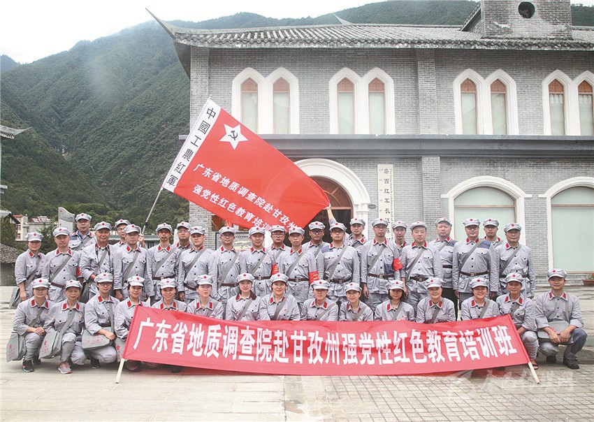廣東地質(zhì)調(diào)查院紅色黨性教育培訓(xùn)班在磨西會(huì)議紀(jì)念館合影。