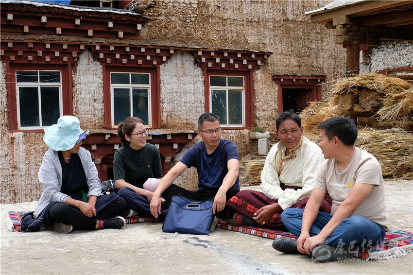 巴塘縣紀(jì)委監(jiān)委干部在訪村入戶過程中與群眾席地而談。