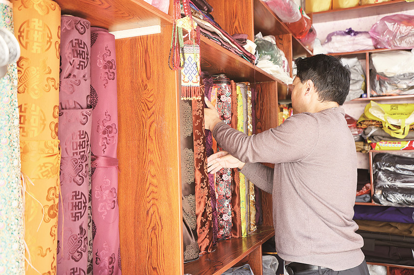 縣城的店鋪開(kāi)業(yè)僅兩年,生意異?;鸨?,這得益于扎西澤仁對(duì)手工藝的精湛掌握和對(duì)傳統(tǒng)文化的深刻理解。他講究慢工出細(xì)活,從設(shè)計(jì)到裁剪、縫合、熨燙,每一道工序都是純手工制作,這些服飾不僅款式獨(dú)特、工藝精湛,更蘊(yùn)含著豐富的文化內(nèi)涵和歷史底蘊(yùn)。
