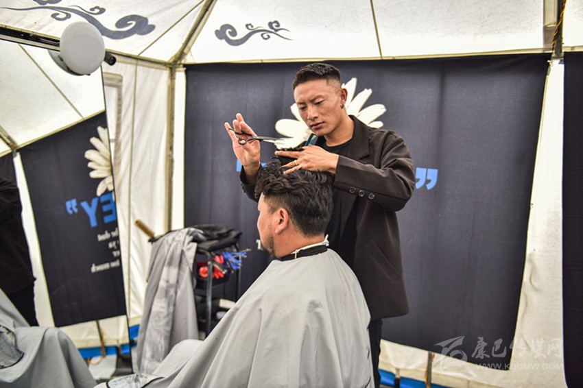 “有很多康巴漢子找我做造型,上個(gè)月,我把小帳篷換成了現(xiàn)在的大帳篷,進(jìn)行了一些簡(jiǎn)單的裝飾,能容納更多人,大家剪頭發(fā)更方便了,游客也能看到更精致的康巴漢子?!鼻鸁羯V樽院赖匦χf(shuō)。