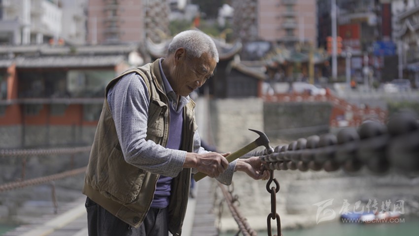 姚先貴每天堅(jiān)持走一遍鐵索橋,檢查鐵索安全。
