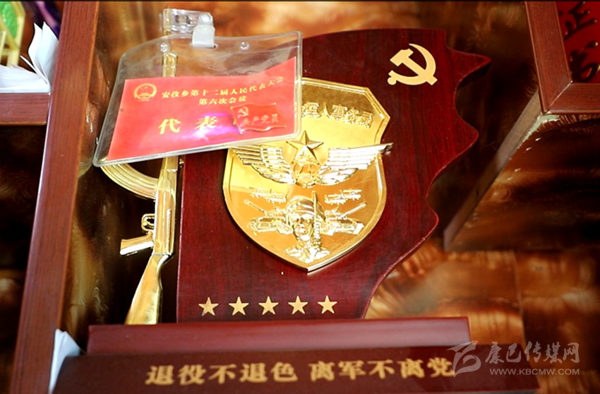 西濤老人珍藏的鄉(xiāng)人代會代表證及退役紀念品。