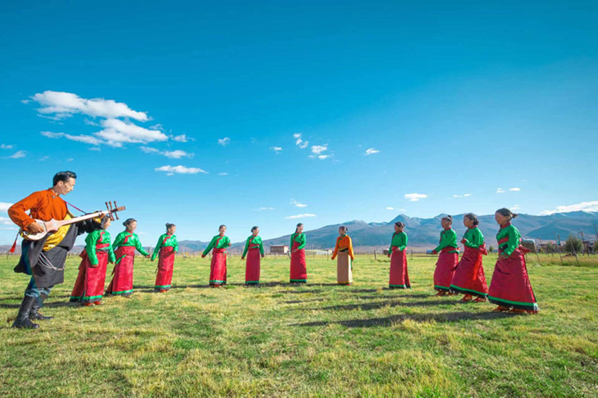 澤仁彭措是位“半路出家”的鄉(xiāng)村音樂教師?!靶r候就對音樂特別感興趣,但那時候家里沒條件,很難有機會系統(tǒng)地學習音樂知識。”長大后,澤仁彭措成為一名教師。工作之余,他始終保持著對音樂的熱愛,自學了札木聶和弦子等樂器。