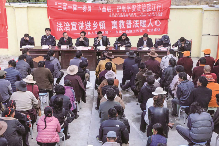 “三官一律一委員”通過高效整合法官、檢察官、警官、律師、政法委員五支力量,緊緊圍繞“155533”市域社會治理總體發(fā)展思路,以“五治融合”為目標,通過“縣級+鄉(xiāng)鎮(zhèn)”的人員配置、“政策+法律”的職能作用、“法條+案例”的豐富內容、“宣講+提問”的互動方式,將單一的宣講工作變?yōu)槎嘣恼勑恼勗?,形成新的“五位一體”工作方法,并致力于化解“五大風險”,強化“五大建設”,同時鞏固市域社會治理現(xiàn)代化工作成果,探索構建合縱之環(huán)、合縱之勢、合縱之力,為建設更高水平的平安雅江、法治雅江提供了更加堅實的法治保障。