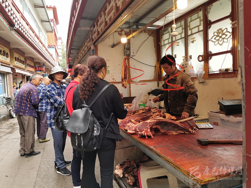 游客正在購(gòu)買(mǎi)牦牛肉。