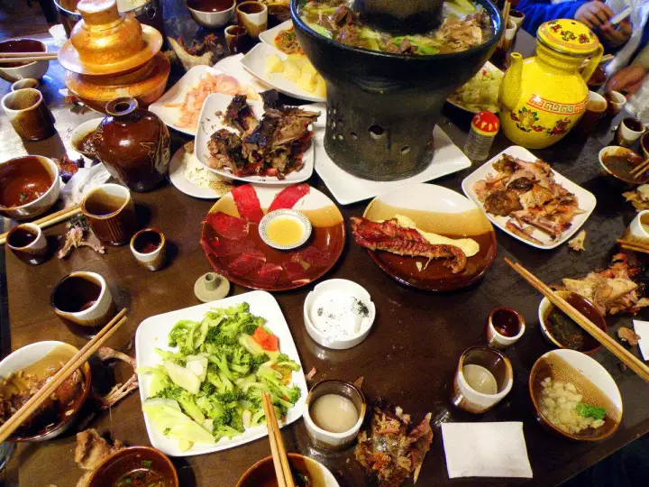 藏餐是中國藏族少數(shù)民族日常食用的菜肴,最具有特色和代表性的藏餐:灌腸、青稞酒、酥油茶、酸奶、牛羊手抓肉、涼拌牦牛舌、糌粑,以及甜茶、烤腸、風(fēng)干肉、夏普青等。擺上這一大桌,簡直是吃貨的天堂。