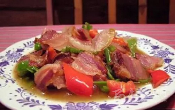 嘉 絨語稱“大古兒”,與香豬腿一樣,豬膘是丹巴的土特產(chǎn)之一。境內(nèi)居住在高山半高山一帶的藏羌群眾家家做豬膘。豬膘就是豬的肥膘做成的,一頭豬砍去四個“肘 肋”肉,去頭和項圈后,余下的從背梁上剖開,做成兩扇豬膘,在一鍋開水里煮成半熟,取出后,用木棍將其撐開弄直,在露天里凍兩天晚上,待基本成型后掛曬晾干。一般每戶人家在藏房的二樓有固定的房間放肉,在房間內(nèi)搭設(shè)一個架子,把豬膘平放在架子上,一扇重一扇。家庭富足的每年能積存一定數(shù)量的豬膘,幾年后, 已堆滿一個房間。豬膘的食用方法各個地方有所不同,境內(nèi)邊耳鄉(xiāng)一帶一般吃生豬膘,每當寨子里有人家蓋房、辦喜事,會提前做很多火燒子饃饃,切很多塊狀的豬膘;當天幫忙的一人發(fā)一個火燒子饃饃、一塊豬膘肉;豬膘一般不去毛,食用的時候在滾燙的茶水里浸泡一會兒,然后用刀將皮毛去掉,然后和著饃饃食用。小金溝 一帶有用豬膘做“墩子”肉(又稱“坨坨肉”)的習(xí)俗,“墩子”肉是“九大碗”中的主菜,其做法是把豬膘切成塊,放上佐料,用文火燉耙,然后一碗一碗舀上桌食用,“登子”肉燉的時間越長就越香。境內(nèi)其他一些地方普遍把豬膘煮熟切成片和著饃饃食用。
