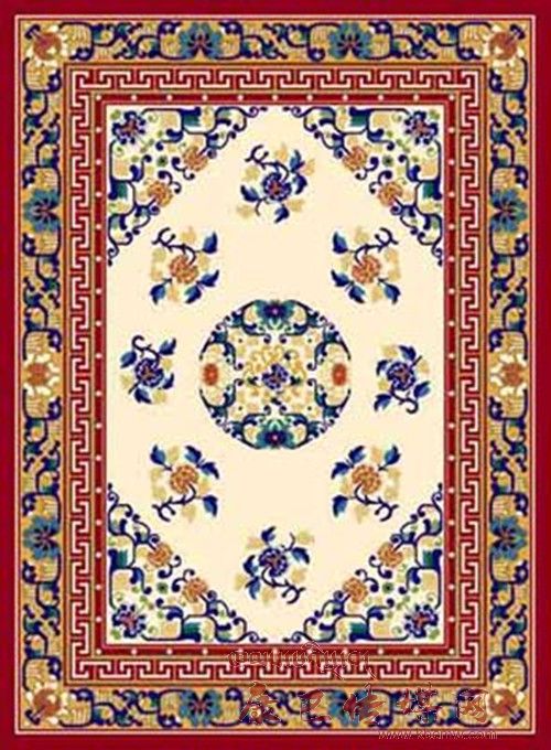 藏毯是植物染色,手工捻線,經(jīng)藝人的精心編織而成。它柔軟、耐用、美觀、大方,又有濃厚的民族特色,對(duì)生活在高寒地區(qū)的人們隔潮御寒、保溫取暖有重要作用。因些是長(zhǎng)期在牧區(qū)生活所不可缺少的用品。它的品種,有地毯、炕毯、坐毯等。它是在藏族傳統(tǒng)藝術(shù)的基礎(chǔ)上,吸收、融合了漢族、印度和尼泊爾宗教藝人精華,形成具有自己獨(dú)特的藏族藝術(shù)風(fēng)格的工藝美術(shù)品。 傳統(tǒng)藏毯的藝術(shù)風(fēng)格,帶有濃厚的宗教色彩,如佛八寶、暗八仙、國(guó)王七寶等。佛八寶即法輪、法螺、寶傘、寶蓋、荷花、寶罐、雙魚(yú)、盤(pán)花;暗八仙屬漢道教文化即寶劍、寶葫蘆、漁鼓、陰陽(yáng)板、仙笛、寶扇、花籃、荷花;國(guó) 王七寶也稱怵寶,屬印度佛教文化,即方勝、連環(huán)錢(qián)、犀角、令牌、象牙、珊瑚、珠寶。還有漢文化的琴棋書(shū)畫(huà)和梅蘭竹菊等。這些內(nèi)容既展示了人們的勤勞智慧和精神力量,也體現(xiàn)出人們對(duì)美好未來(lái)的期待、愿望和幻想。藏毯的表現(xiàn)形式以傳統(tǒng)式為主,還有自由式、龍鳳式及隨品種形式不同的構(gòu)圖形式。色彩表現(xiàn)方面尤為豐富,顏色艷麗、純度高、對(duì)比強(qiáng),色彩構(gòu)圖穿插靈活,與藏族建筑彩畫(huà)的裝飾風(fēng)格一脈相承。